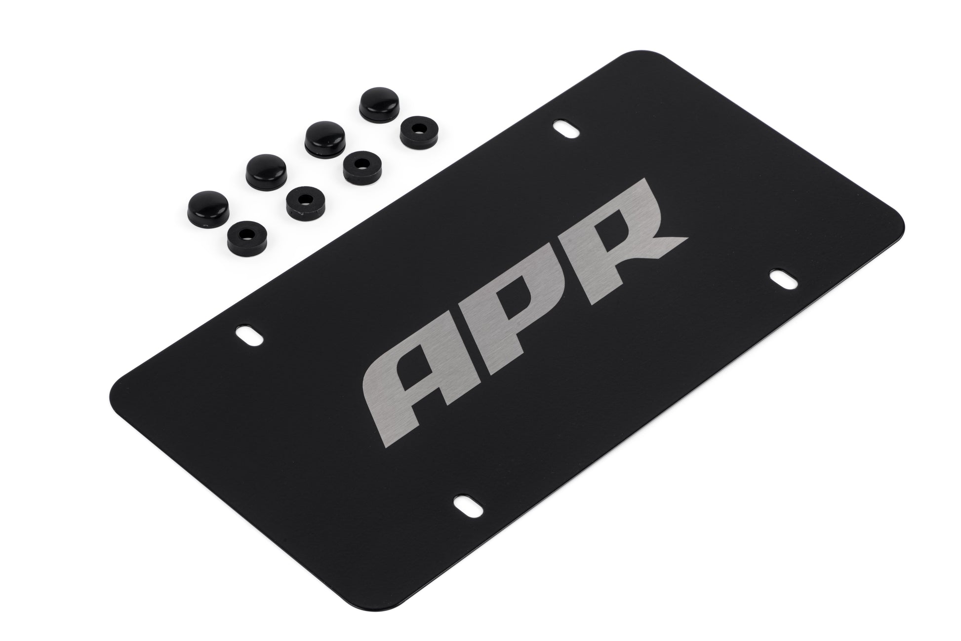 APR license plate frames and vanity plates are the perfect addition for any APR tuned vehicle! They are made from sturdy and rust-resistant T304 stainless steel. They are thick enough such they won't flop around like throw-away handouts you find in a typical swag-bag at car shows. They feature a fade and scratch resistant black powder coated finish with laser etching for the APR logo. Anti-vibration backside plate tabs keep it firmly in place. Four slotted install holes give you the perfect fitment with a solid connection to the car. The nice hardware hiders give it a clean finish too, hiding your unsightly plate screws. Fitment is universal. Some have said this product will increase the value of the vehicle, while others have made horsepower gains, but we can't comment on either.
