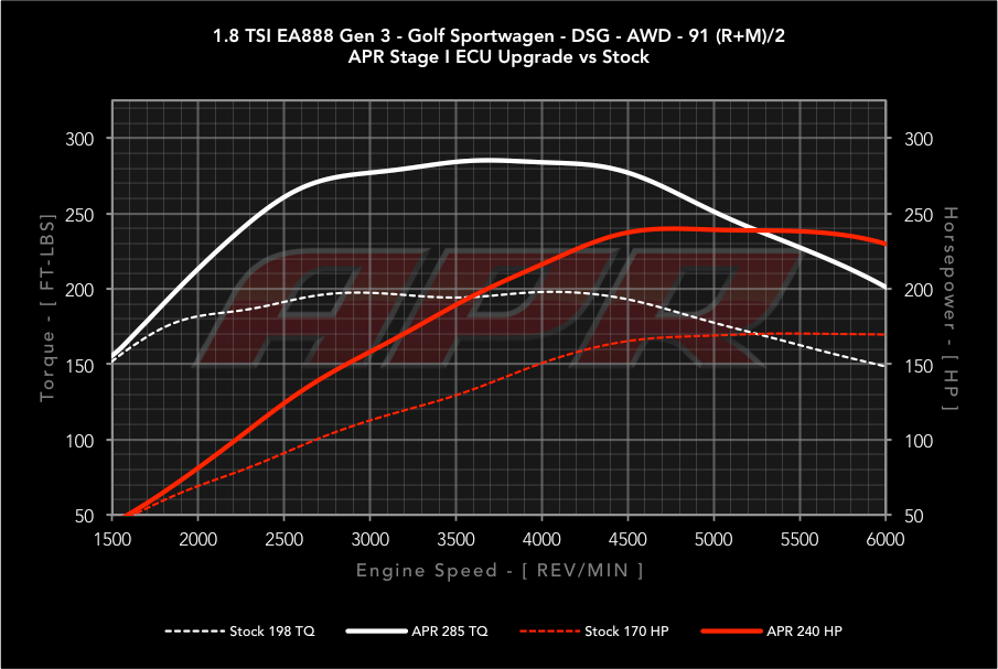 | 91 AKI / 95 RON | 240 HP | 285 FT-LBS | +72 HP | +90 FT-LBS |