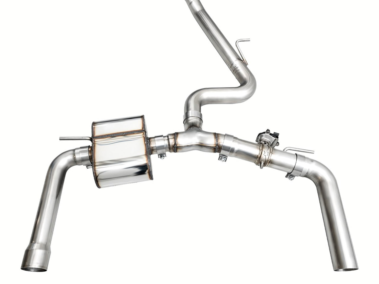 Smooth bends, tight packaging, and two attitudes. The SwitchPath™ Exhaust is comprised of handcrafted 3-inch and 2.5-inch U.S.-sourced T304L stainless steel single pass, 5-cylinder-specific tuned driver’s side muffler with a valved passenger-side tip outlet. SwitchPath™ retains the factory valve behavior and obeys the ECU's commands based on throttle input, engine speed, Drive Select, and the factory-issued exhaust button within the cabin. Sneaking out in the morning or creeping through town? Close the valve. Drop the hammer (or click into Dynamic mode), and your RS 3 will sing a signature AWE tune with enhanced RS burbles that will provoke a firm grin. AWE's Lifetime Warranty, No CEL Light Guarantee, and Perfect Fitment Guarantee come standard.