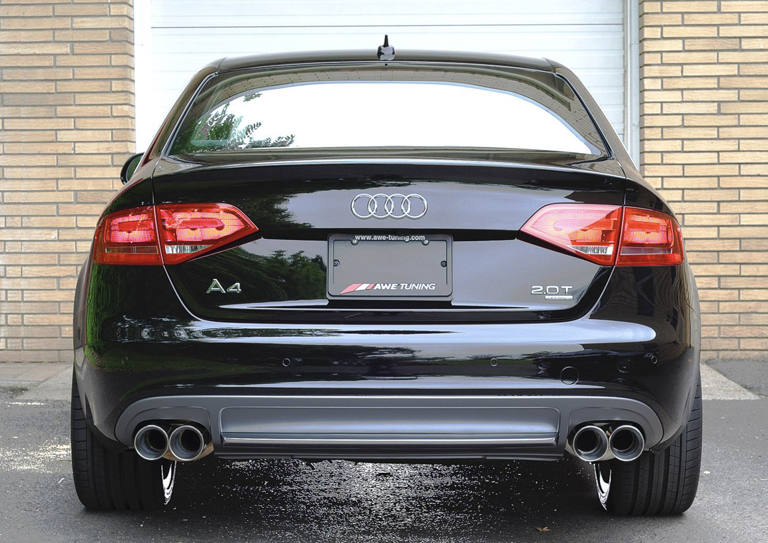 AWE A4 Research and Development has yielded an exhaust that is remarkably civil while idling / part throttle cruising, but unleashed at full throttle it produces what some have called a "war-cry wail." Sophisticated, refined, and powerful, all in one package. Making good, better The stock exhaust system on a B8.5 A4 is full of crimped tubing obstructs exhaust flow and robs horsepower. The AWE B8.5 A4 Touring Edition Exhaust and Downpipe are designed using CAD modeling software to produce smooth gradual bends and to eliminate any interruption to the flow of exhaust gasses. Our improvements to the exhaust path result in gains of 8-9 horsepower and 6-7 lb ft of torque at the crank. AWE A4 Touring Edition Exhaust - Quad Outlet (Four total tips, two on each side) The quad-tip version of our A4 Touring Edition Exhaust features four 90mm (3.50 inch) slash-cut tips, located on each side of the car. The tips sport engraved AWE logos and are double-walled to ensure a mirror polish, even under hard usage. Each tip is individually adjustable, so stagger and depth into bumper can be set according to personal taste. This system will not work with the factory valance and requires a quad-tip conversion. The purchase of an Conversion Kit in order to allow quad tip fitment. Additional sound level tuning For the enthusiast interested in a more aggressive sound, we offer our Resonated Performance Downpipe. The factory unit contains a fairly large straight through resonator. By replacing this large piece with a more compact but still straight through resonator, we were able to increase sound volume while adding a slightly deeper tone. Testing showed no power increase in adding the downpipe. It will mate to our exhaust system or any other exhaust designed to work with the stock downpipe. Please note: This product cannot be returned or exchanged based upon sound satisfaction.