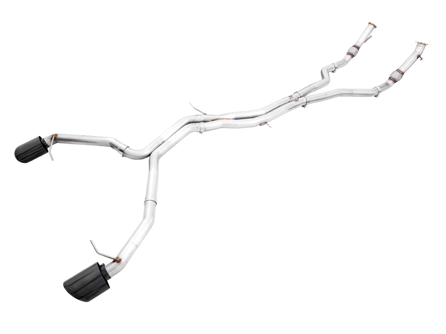 The newfound howl. Presenting the AWE Exhaust Suite for the B9 RS5. If raw and rowdy are your speed, the Track Edition is your dose of steel. The Track Edition Exhaust retains all the precision engineering of the Touring Edition Exhaust, including the X-pipe and 3” diameter tubing, minus the 180 Technology®. Please note: this version is known to get rowdy in the mid-range and during cruising speeds, and may be too much for many. For that reason, this particular versions cannot be returned due to sound preference. Prepare yourself. Looking to crank it up or turn it down? No problem. We have Conversion Kits to allow you to do just that. Turn your Touring Edition into a Track Edition, or vice versa, with ease. Come standard with Diamond Black 180mm RS-style oval tips, complete with stamped AWE logo.