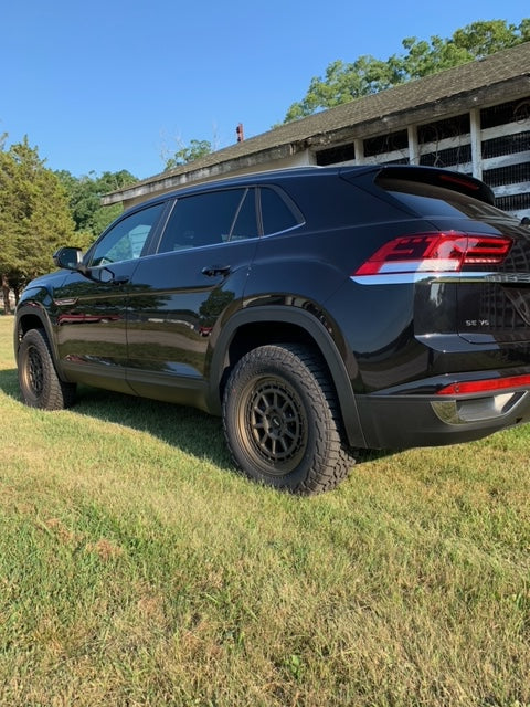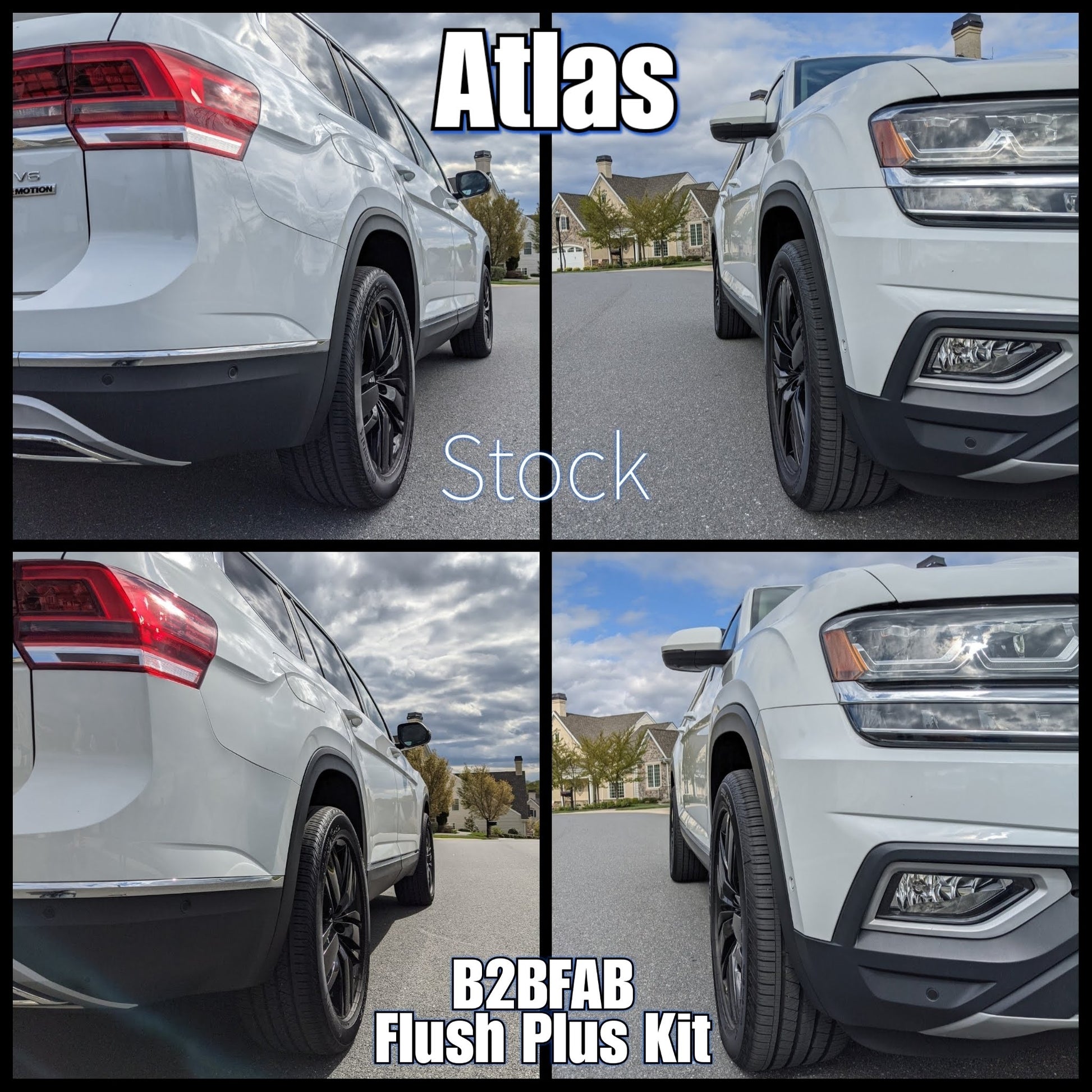 Our B2BFAB Flush Plus spacer kit is comprised of our very own precision machined 20mm front and 25mm rear wheel spacers. This combination was selected to space your wheels out even with the muscular Atlas body lines. If you're looking to give your Atlas the perfect stance, look no further. This is the kit for you!