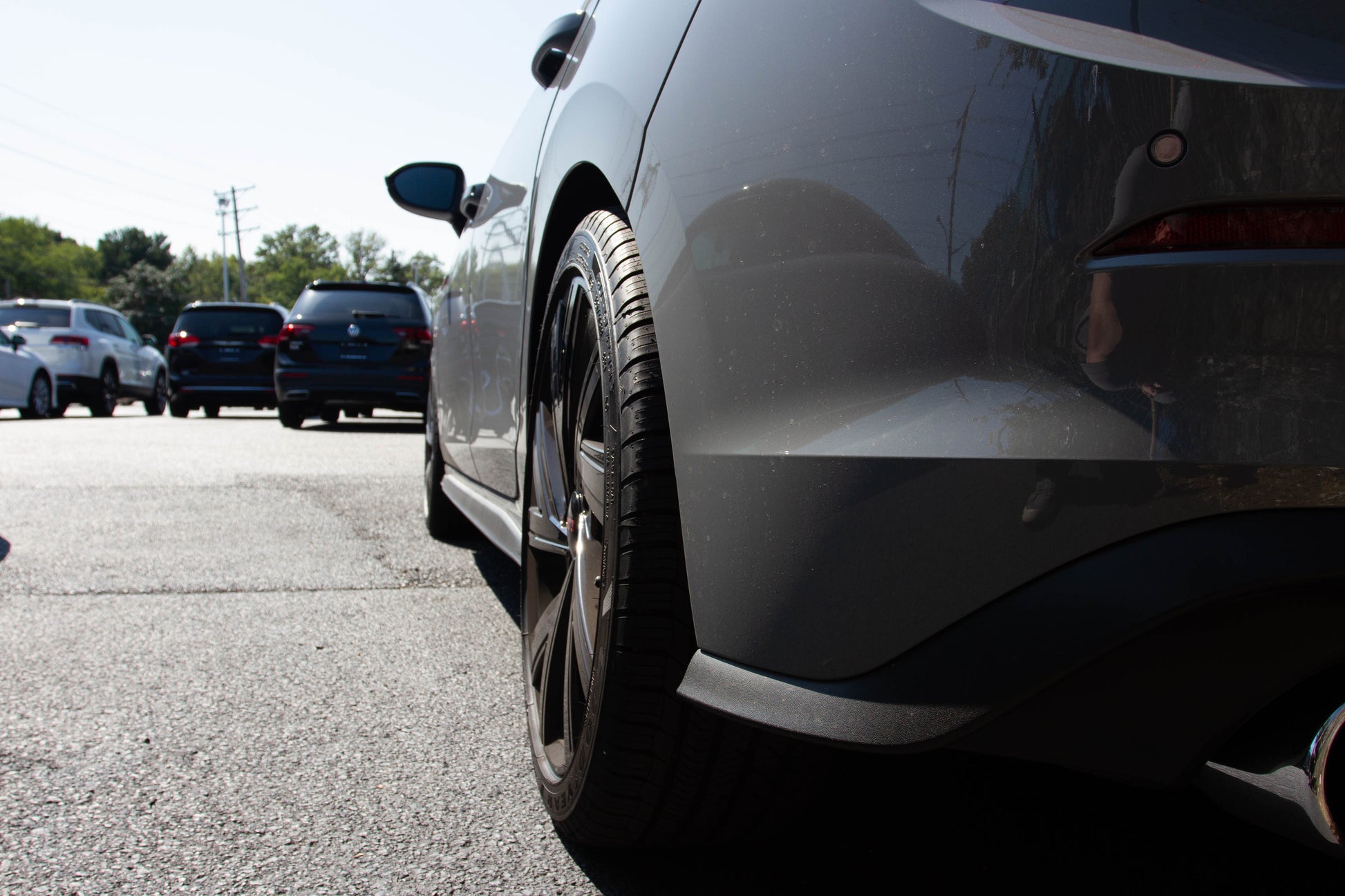 Vehicle pictured is at stock ride height with the OEM 18" wheels. Fitting this kit with OEM 19" wheels will result in 7mm wider stance. Rubbing is possible with lowered ride height.