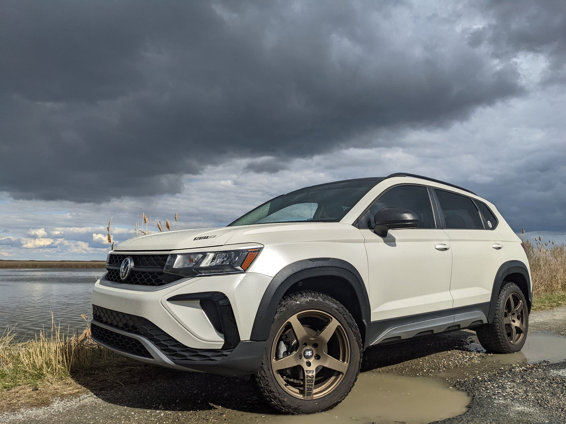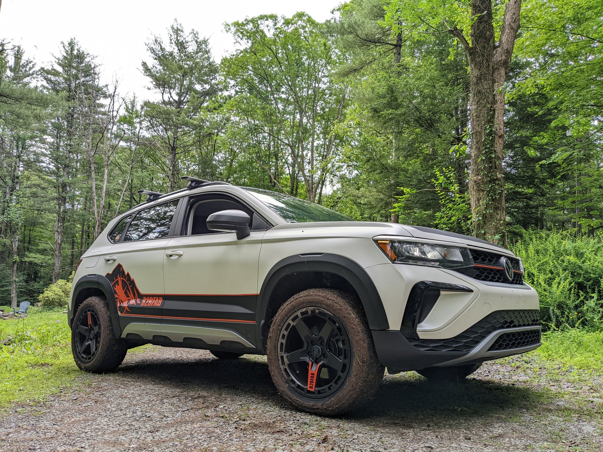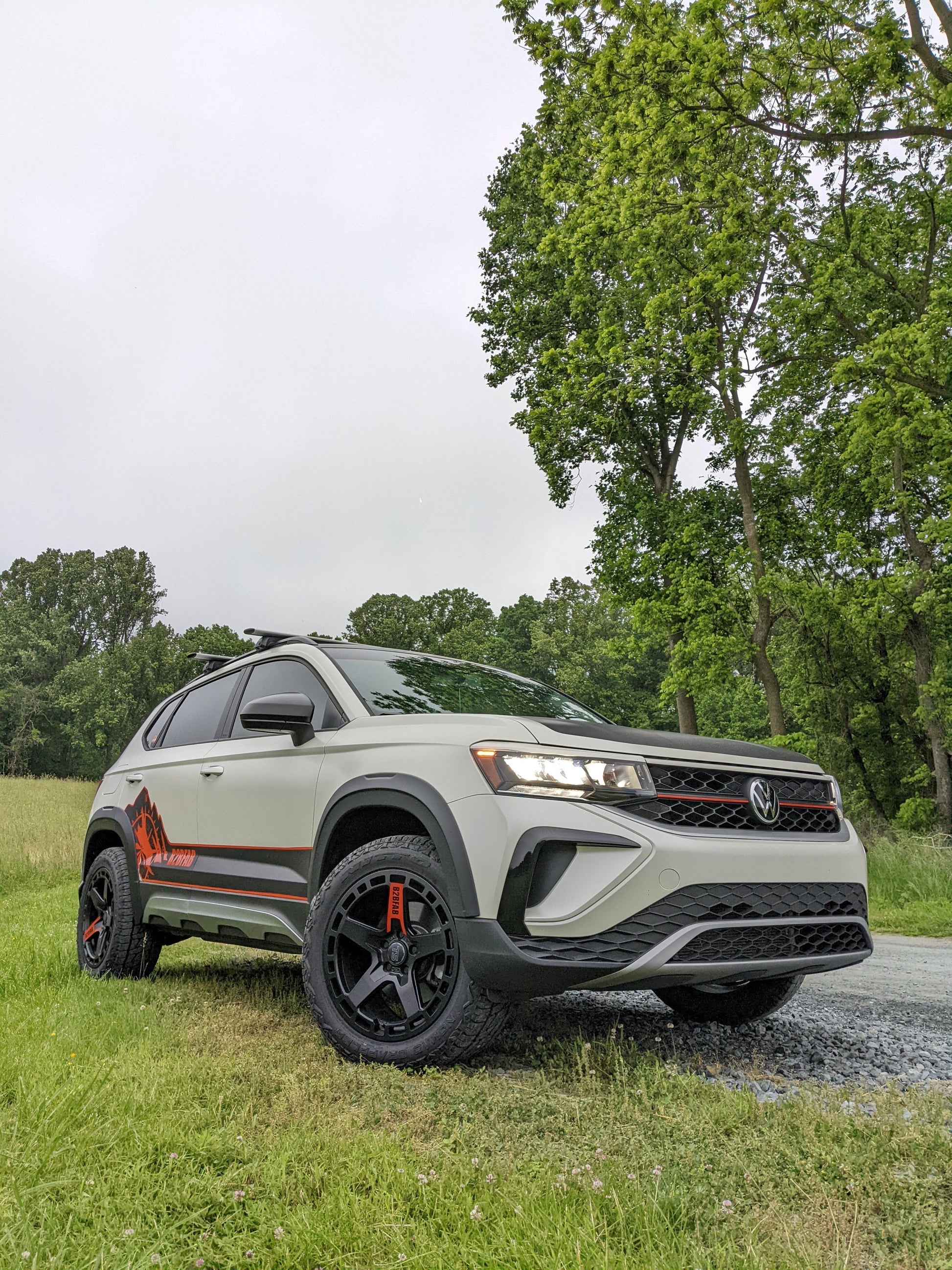 The Overview: The owners of B2BFAB developed the first lift kit in 2016 for the MQB platform (MQB = shared chassis for Atlas, Tiguan, Alltrack, Taos, Golf, Jetta, Audi A3, Q3, and more). The initial kit was a simple bolt through front spacer design and resulted in less than ideal alignment specs, which made for less than ideal handling and tire wear. Both were issues that needed to be addressed. Over the next five years, we tested numerous prototypes and worked to perfect a design that checked all of the boxes. We are proud to introduce the B2BFAB Taos LEVEL-2 Camber Correcting Lift Kit!