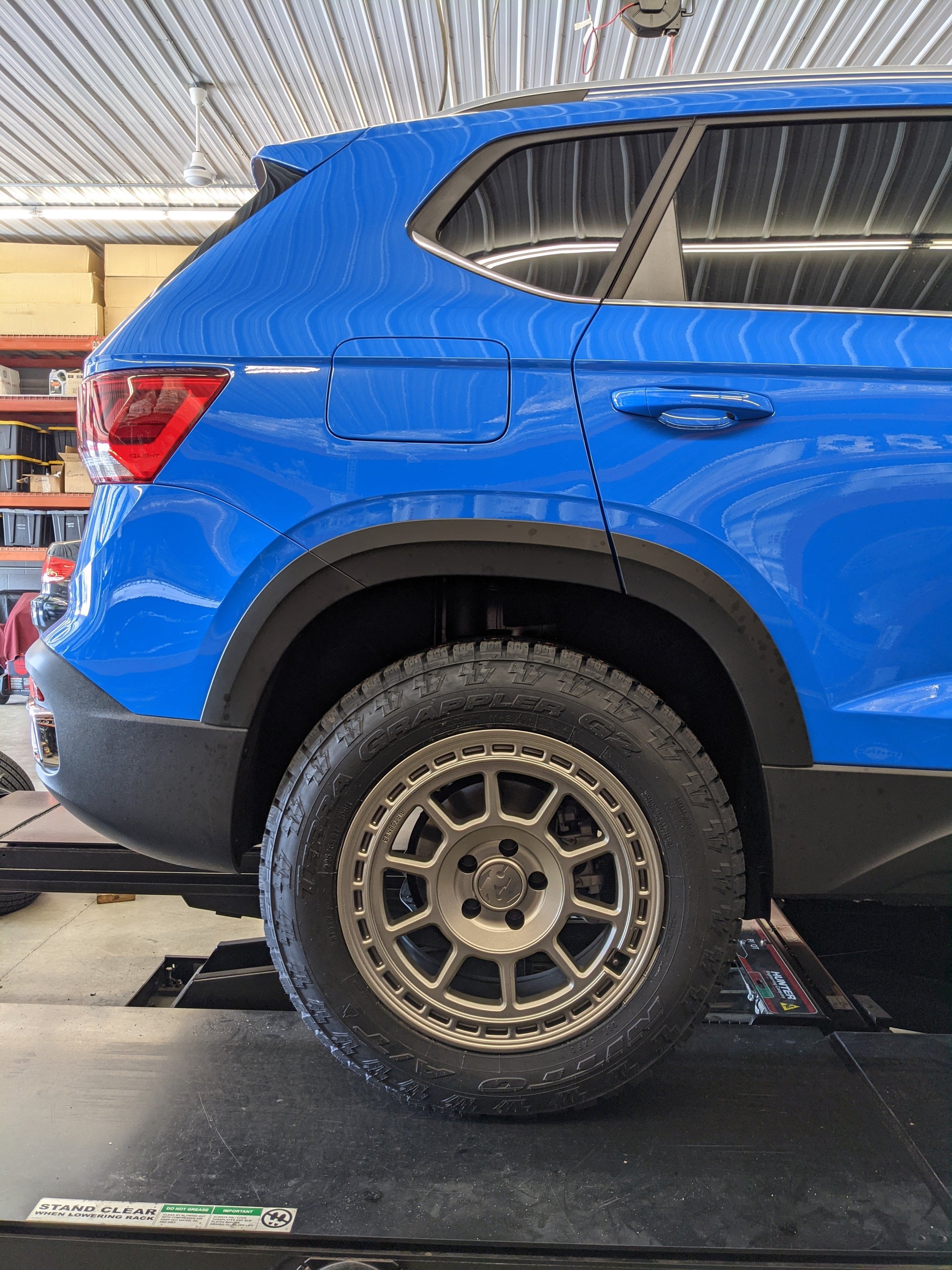 The B2BFAB Level-2 Camber Correcting Lift Kit is the only kit on the market for your Taos that provides the 1.5" lift you want without sacrificing handling, ride quality, or proper alignment specifications!