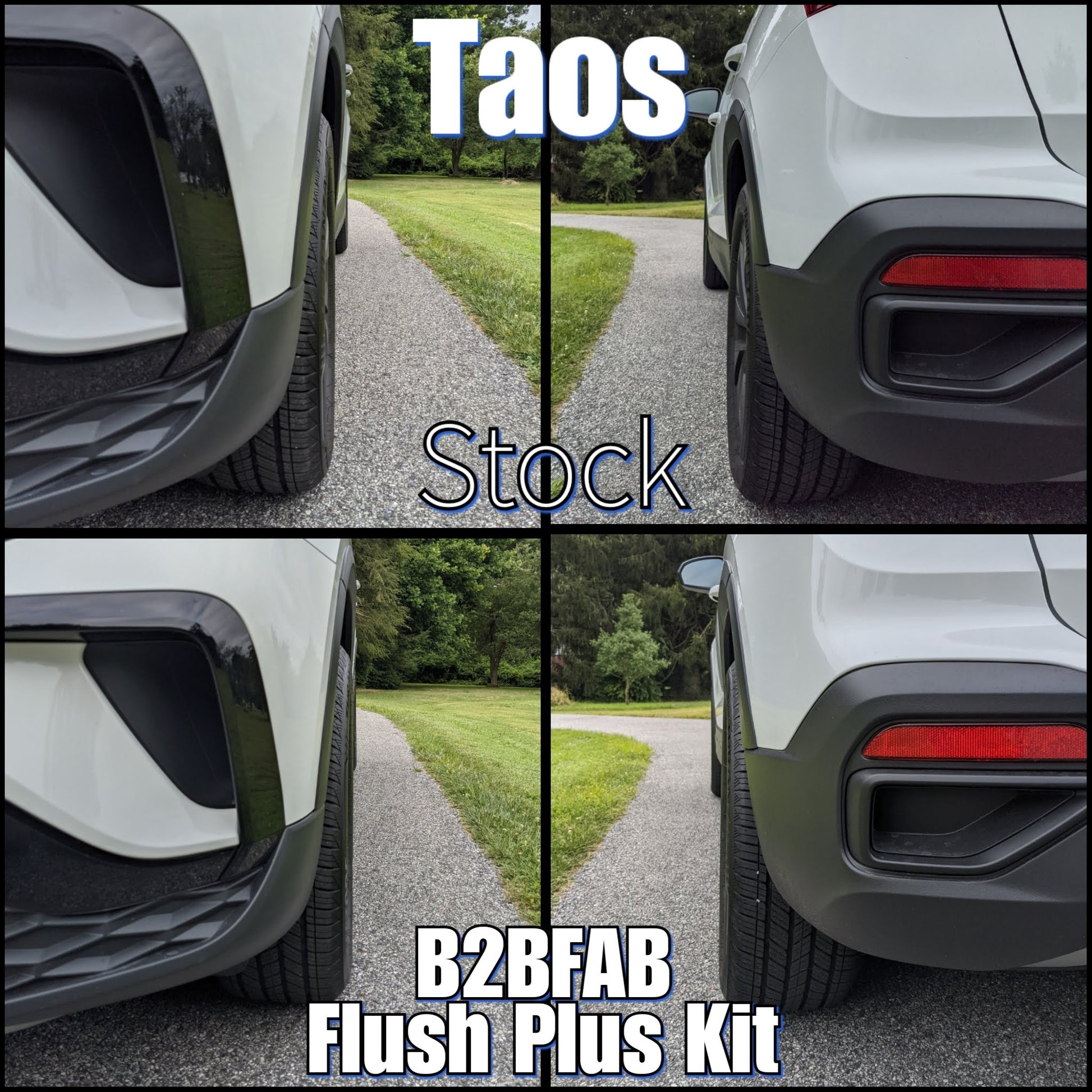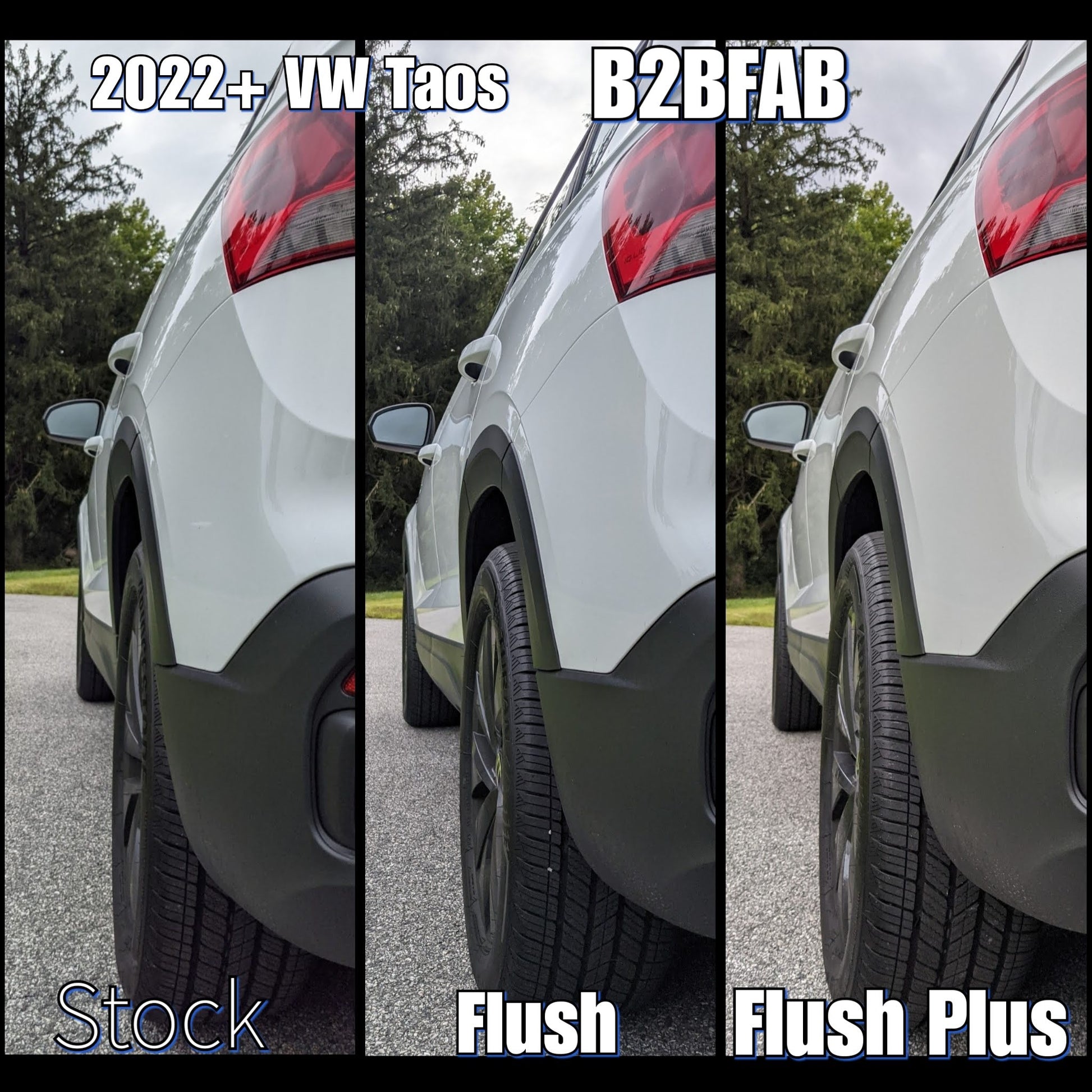 Our B2BFAB Flush Plus spacer kit is comprised of our very own precision machined 20mm front and 25mm rear wheel spacers. This combination was selected to space your wheels out even with the flowing Taos body lines. If you're looking to give your Taos the perfect stance, look no further. This is the kit for you!