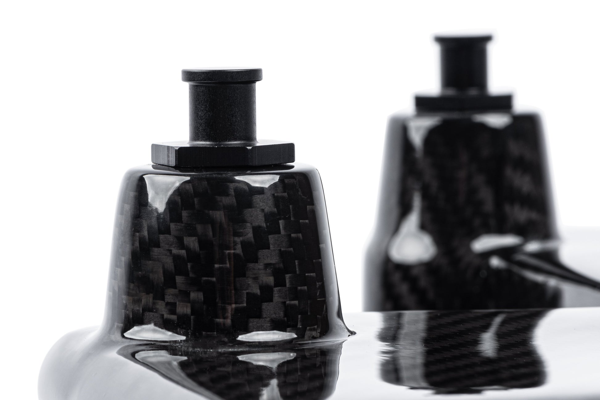 Our system is made from carbon fiber and looks absolutely stunning under the hood. By using this material we are able to make the wall-thickness of the tubes smaller, maximizing the internal diameter, increasing performance even more! The material also allows us to make complex organic shapes necessary when working in a tight engine bay.