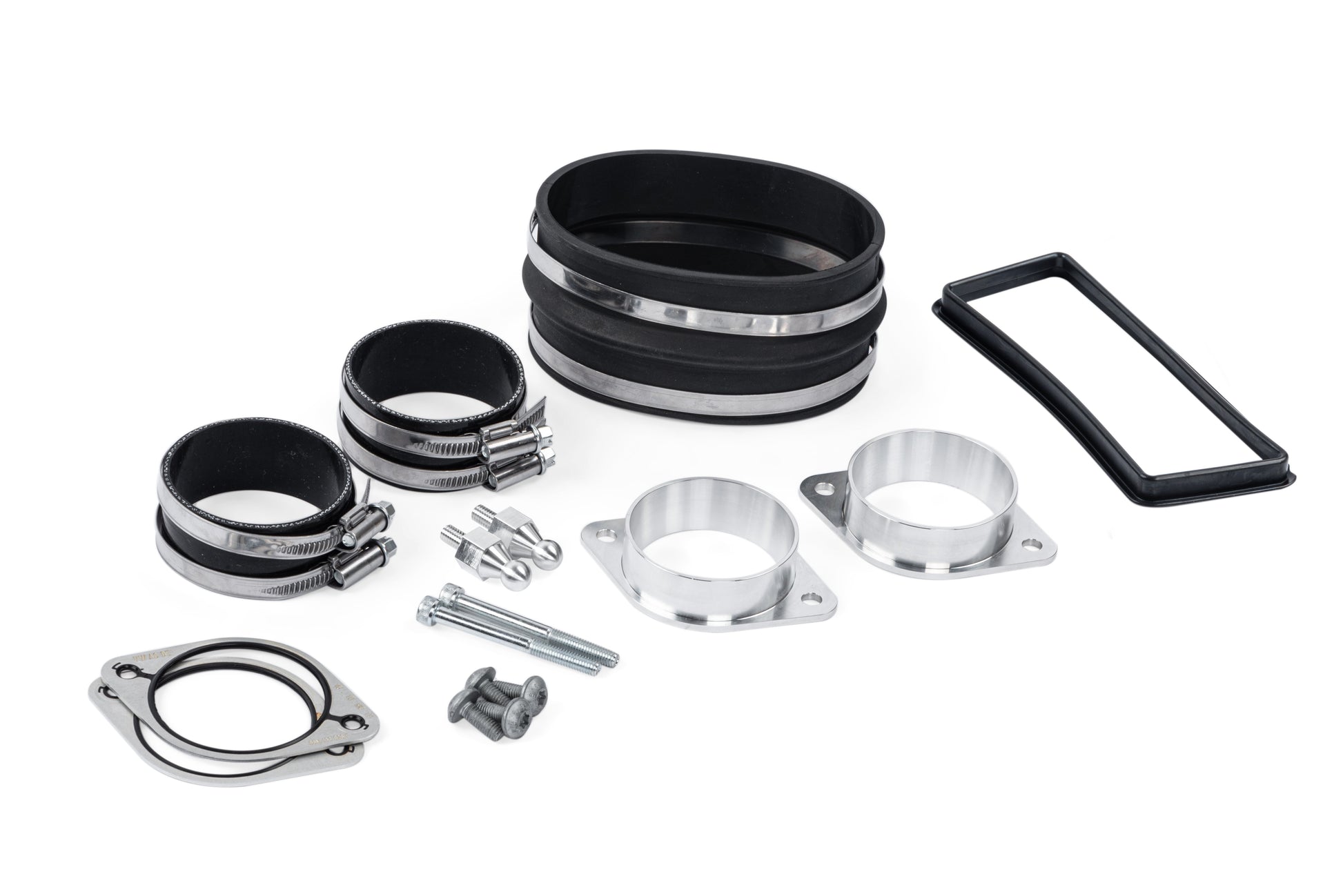 Our kit includes everything you need to bolt on and go. No new tuning is needed to run this product, and the product is emissions friendly. We include all new OEM gaskets and all the nuts, bolts, and clamps needed for an easy install. Lastly, thanks to our billet turbo inlet adapters, this is the only intake you'll ever need. Should you later upgrade your turbo, new, larger adapters can be installed to adapt to the larger inlets simply by swapping out the billet adapters!