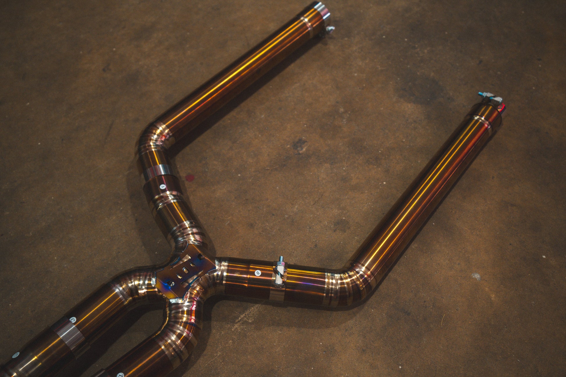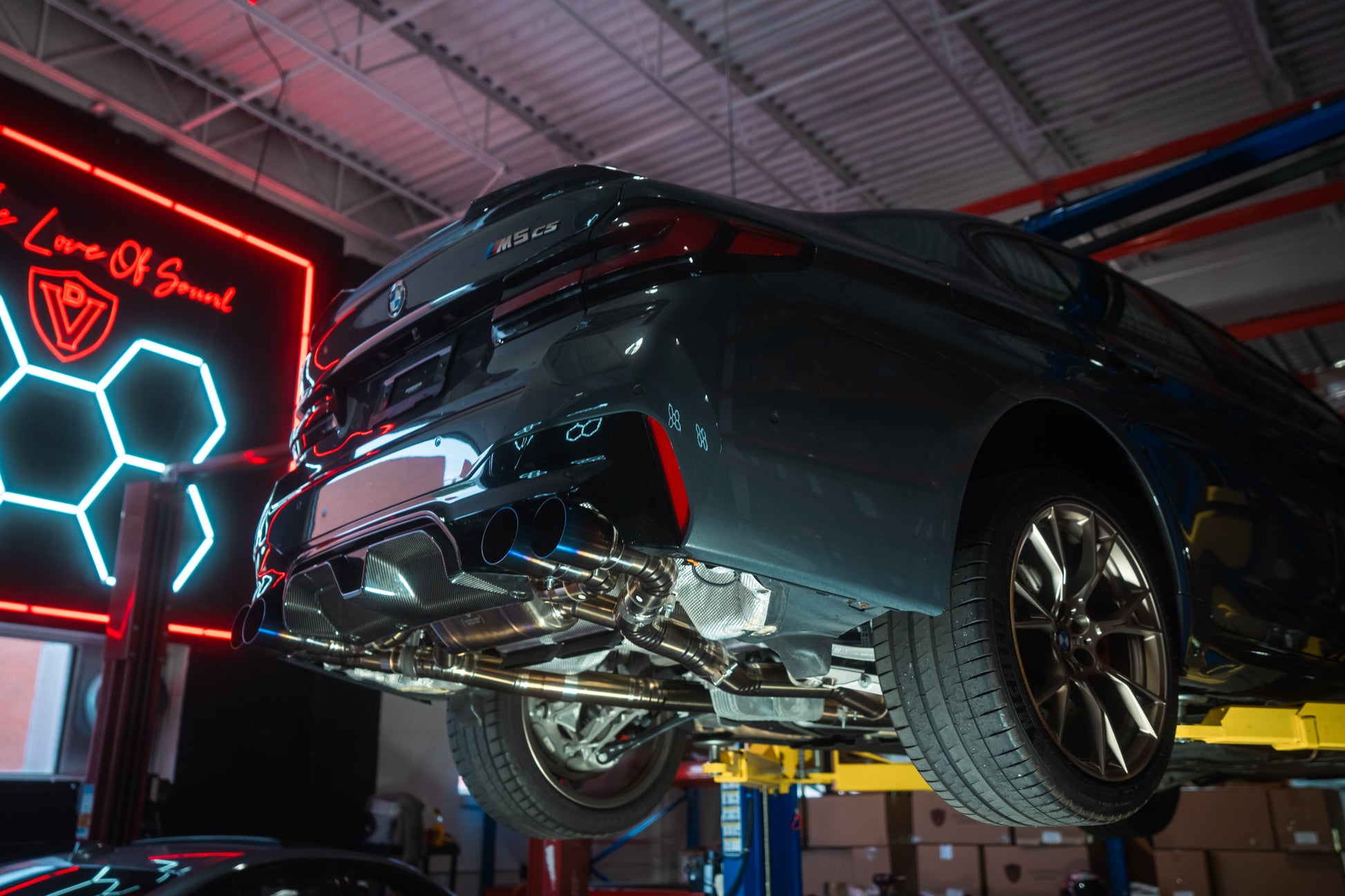 This system offers a unique sound profile compared to many others on the market. When combined with aftermarket downpipes, many other systems on the market give a buzzy and raspy experience which is not desirable for the BMW F90 M5. Utilizing our large cross-section X pipe, the rasp is nearly eliminated and you can more clearly hear the raw and exciting sound tone the M5 should've always had. With this X pipe very far forward, you get increased exhaust scavenging, better performance, and a more exotic engaging sound profile.