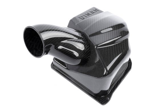 To propel these hefty, yet capable, luxury vehicles, a large volume of air is required to be fed into two powerful turbochargers. The stock airboxes that provide this air utilize restrictive panel filters and artificially limit air volume. With a few small tweaks, however, a more efficient system with increased flow capacity that yields more power can be achieved. That is exactly what Dinan has done with the revised and improved carbon fiber cold air intake system for the M550i and M850i. Retaining the factory lower boxes for simplicity but enlarging the air box lids via the removal of the unused "U" channels afforded the opportunity to be able to not only increase volume by 54%, but also allowed the use of bespoke high-flow cone filters with 22% more surface area than the factory panel filters. The improvements continue down the intake tract with the enlarged volume of air transitioning into an organically shaped intake pipe that grants a more natural and unhindered flow path into the turbo. The combination of these improved features means the engine is allowed to ingest more cold air with less restriction resulting in top end gains of +17 WHP / +18 ft-lbs of torque.