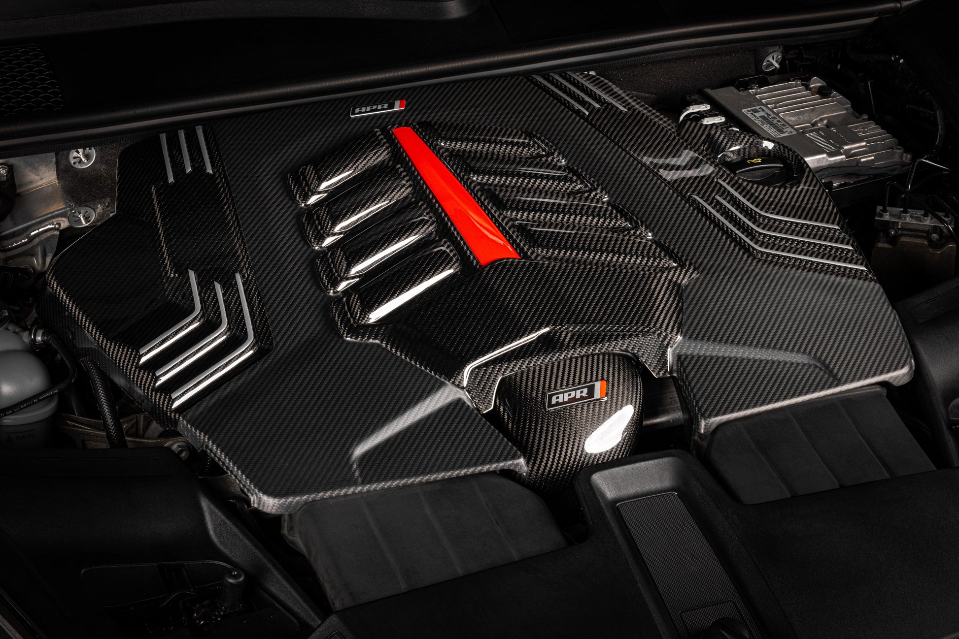 The 2.9T, 3.0T, and 4.0T engines share a beautiful engine cover platform that spans many makes and models across the Audi, Bentley, Lamborghini, Porsche, and VW line up. In most cases, the factory cover is somewhat bland, and not quite befitting to such amazing engines. It's a lot for plastic and sound dampening material that takes away from the turbocharged fun your V6 or V8 engine produces. But not anymore. With an APR engine cover we'll enhance not only the appearance of the engine bay, but the sound too!
