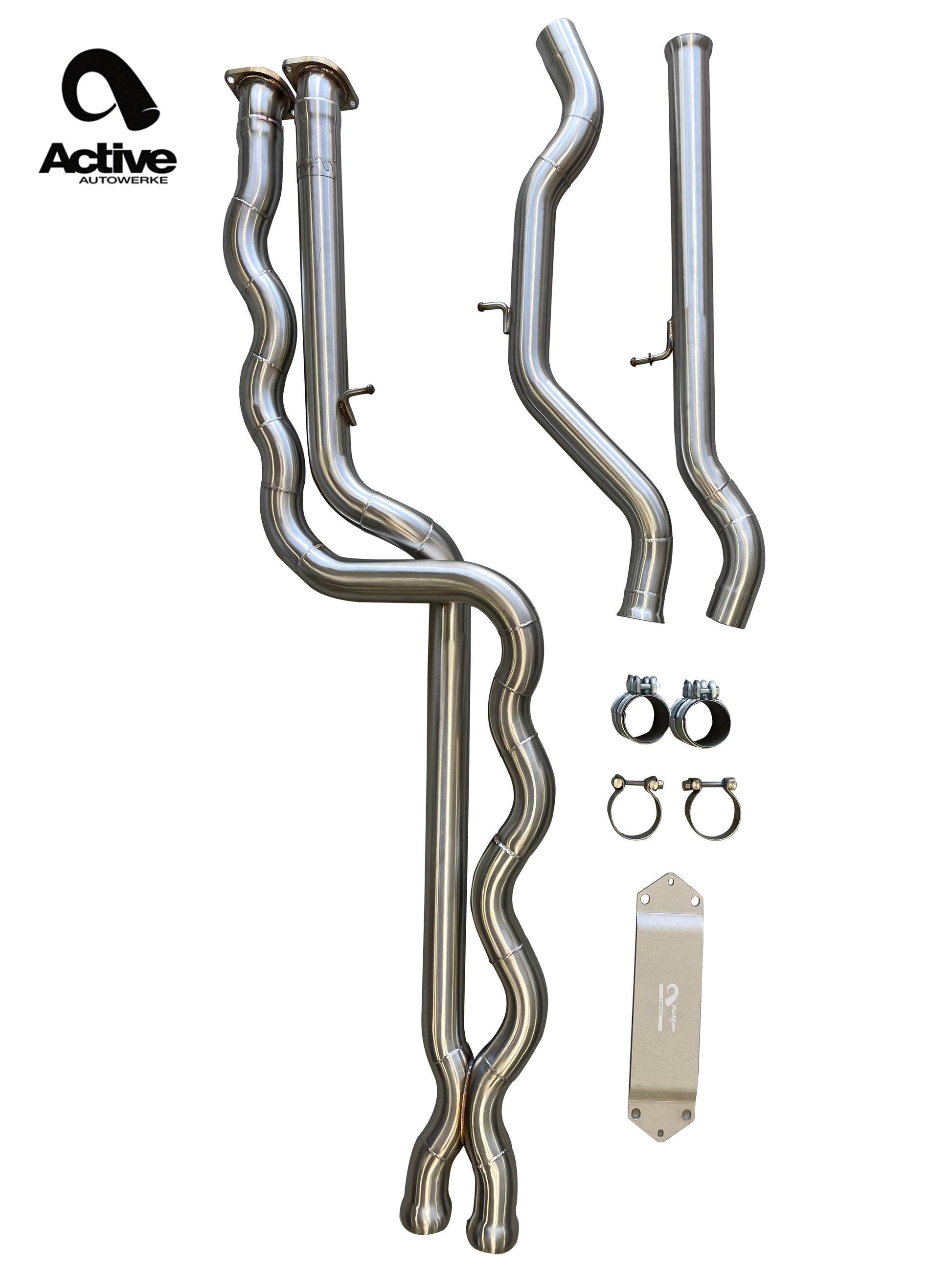 The Active Autowerke F8X Equal Length Mid Pipe was specifically designed to create equal length exhaust pipes adjusting for the difference between the front and rear banks of the F80 M3 and F82 M4 down pipes before mixing in an X-pipe and creating an exhaust note different from the normal "S55 sound". Engineered for an exact fit on both the F80 M3 and F82 M4, the difference in sound with this mid pipe will be noticeable the first time with an open throttle!