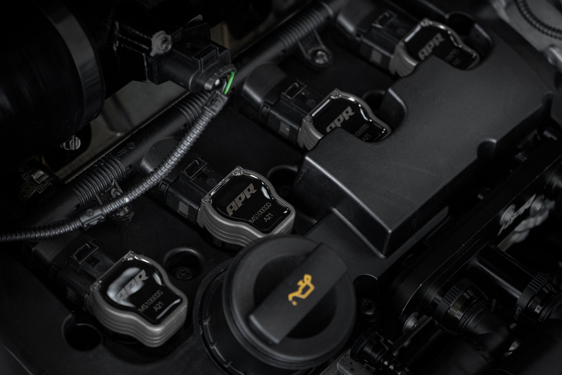 APR Ignition Coils are designed to be a direct plug-and-play upgrade to factory coils, and provide greater energy output, ensuring a stronger and more consistent spark. The commonplace replacement of factory ignition coils with those taken from the higher output Audi R8 is popularly believed to provide greater energy output. However, testing proves that they are no more powerful than the factory coils that are found on other engines. APR Ignition Coils increase energy output by up to 10% over stock. They are a direct upgrade or replacement, and come with a unique grey housing!