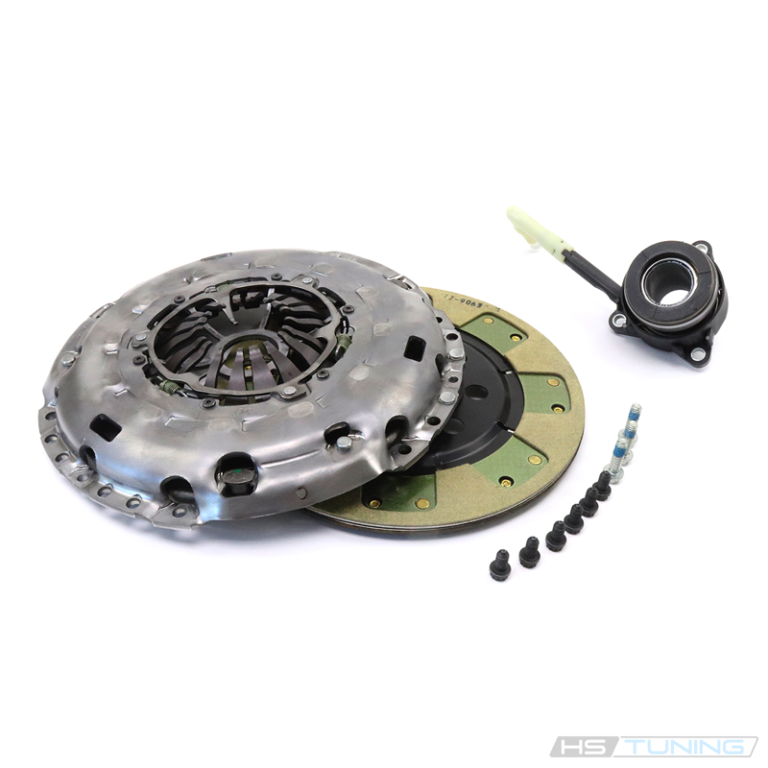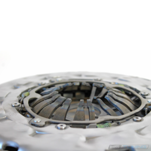 This clutch was developed to fill a void in the market. Many Golf R owners wanted to increase the output of their car with ECU software, hybrid turbos, and the corresponding bolt on parts without having to deal with the compromises of a single-mass clutch kit. The clutch disc is a complete redesign from the original RSR clutch, utilizing an HD organic friction material on the flywheel side, and a segmented kevlar material on the pressure plate side. This provides a smooth but positive engagement. The lightweight, unsprung hub keeps the mass of the disc as low as possible. The clutch engages very close to the stock engagement point in the pedal travel. Although the RSR hybrid isn't silent at idle without the clutch pedal depressed it's notably more quiet than most single mass clutches, and it does not have any of the noise that single mass kits have during low rpm acceleration or high rpm deceleration. A great deal of time, effort, and testing went into this clutch. The result is a clutch that has stock like drivability with a significantly increased torque capacity! We recommend this clutch for Golf R owners that have increased power, but daily drive their cars.