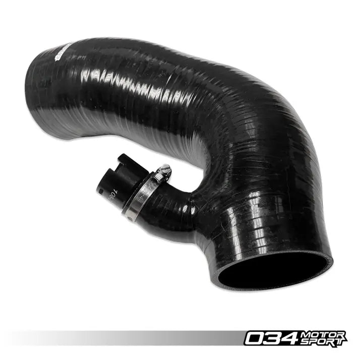 The 034Motorsport Turbo Inlet Hose for the Volkswagen Mk8 Golf R & 8Y Audi S3 is designed to replace the unattractive and restrictive OEM corrugated plastic turbo inlet hose. The 034Motorsport Turbo Inlet Hose smoothly transitions from the intake to the turbo inlet pipe, providing increased airflow capability to support other power-improving modifications. Wire reinforcement ensures the 034Motorsport Turbo Inlet Hose retains its shape, resisting vacuum-induced collapse when turbocharger air demand is increased.