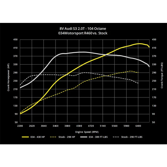 034Motorsport is pleased to introduce the R460 Hybrid Turbocharger System for the 8V Audi S3 and MkVII Volkswagen Golf R! Consisting of an OEM+ Hybrid Turbocharger and 034Motorsport Performance Software, R460 is the elegant, reliable solution for breathtaking performance on the street or track.