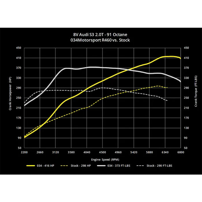 034Motorsport R460 Turbocharger Upgrade Performance Comparisons - View Dyno Data