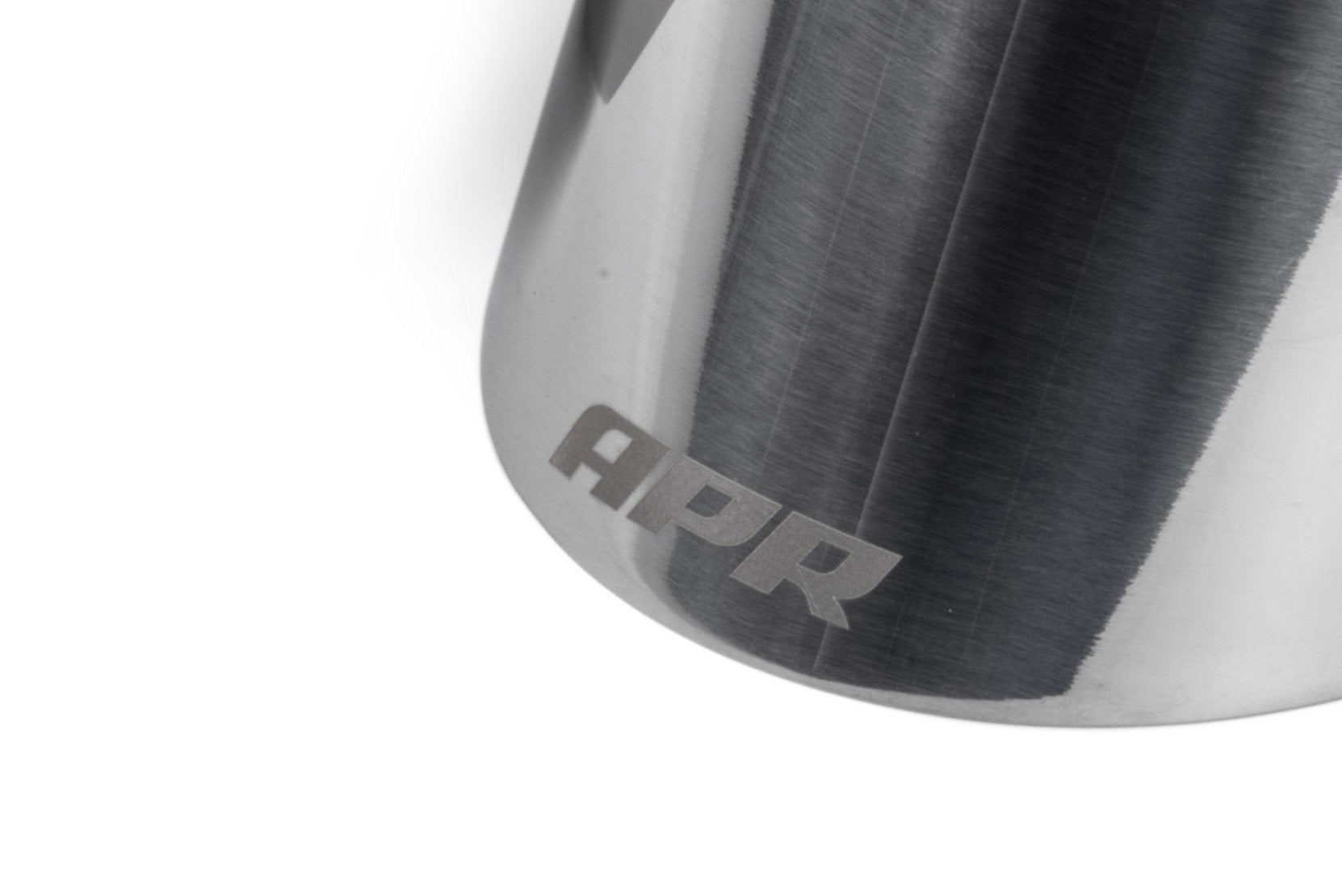 Our polished slash-cut single-walled 4" exhaust tips upgrade the rear of the vehicle dramatically. The motorsport-inspired tips tuck nicely into the factory valance, gently following the valance's curves and demanding all the right attention in all the right places. Each tip features a laser etched APR logo. Each kit is sold as a set of two tips.