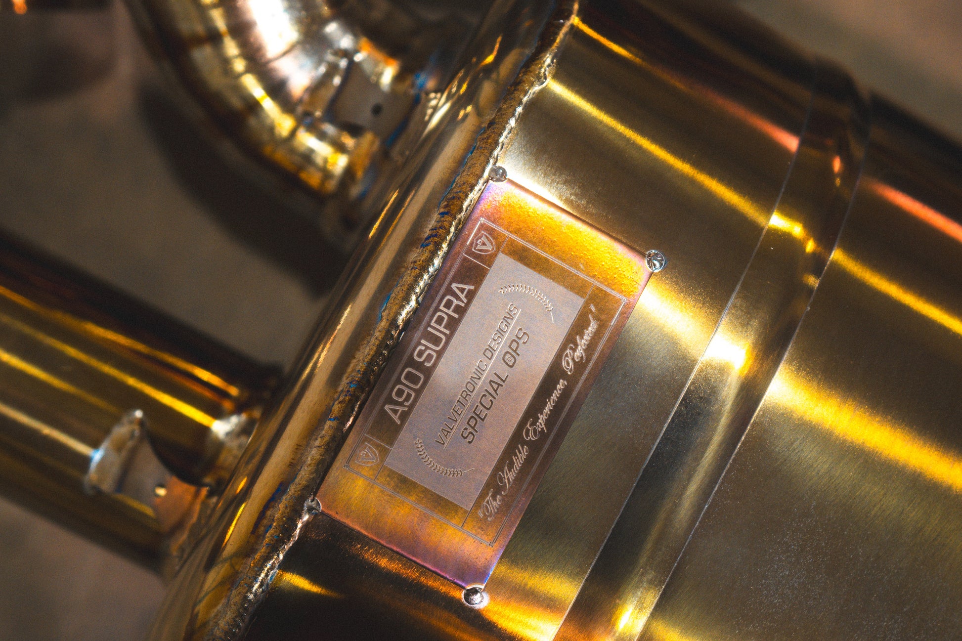 The A90 supra came in with killer looks but left us all asking ourselves how amazing it would sound with some added bite! Our full exhaust system answers this question. When operating in the valves open mode, exhaust gasses pass through the system with minimal restrictions in order to give the most raw sound experience possible. At the touch of a button, exhaust gasses are diverted through our center quad-chambered muffler to drastically lower sound output levels. Take your A90 to the next level and keep your neighbors happy as well!