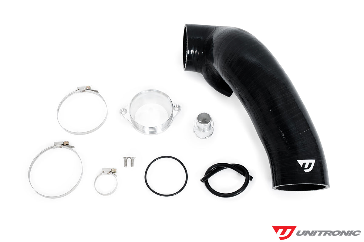 Comprised of a precisely designed, billet machined, direct-bolt-on turbo inlet and oversized 3" straight-through silicone intake hose, this kit delivers 31% more airflow than stock for maximum performance and throttle response with the Unitronic Carbon Fiber Intake System or factory intake system.